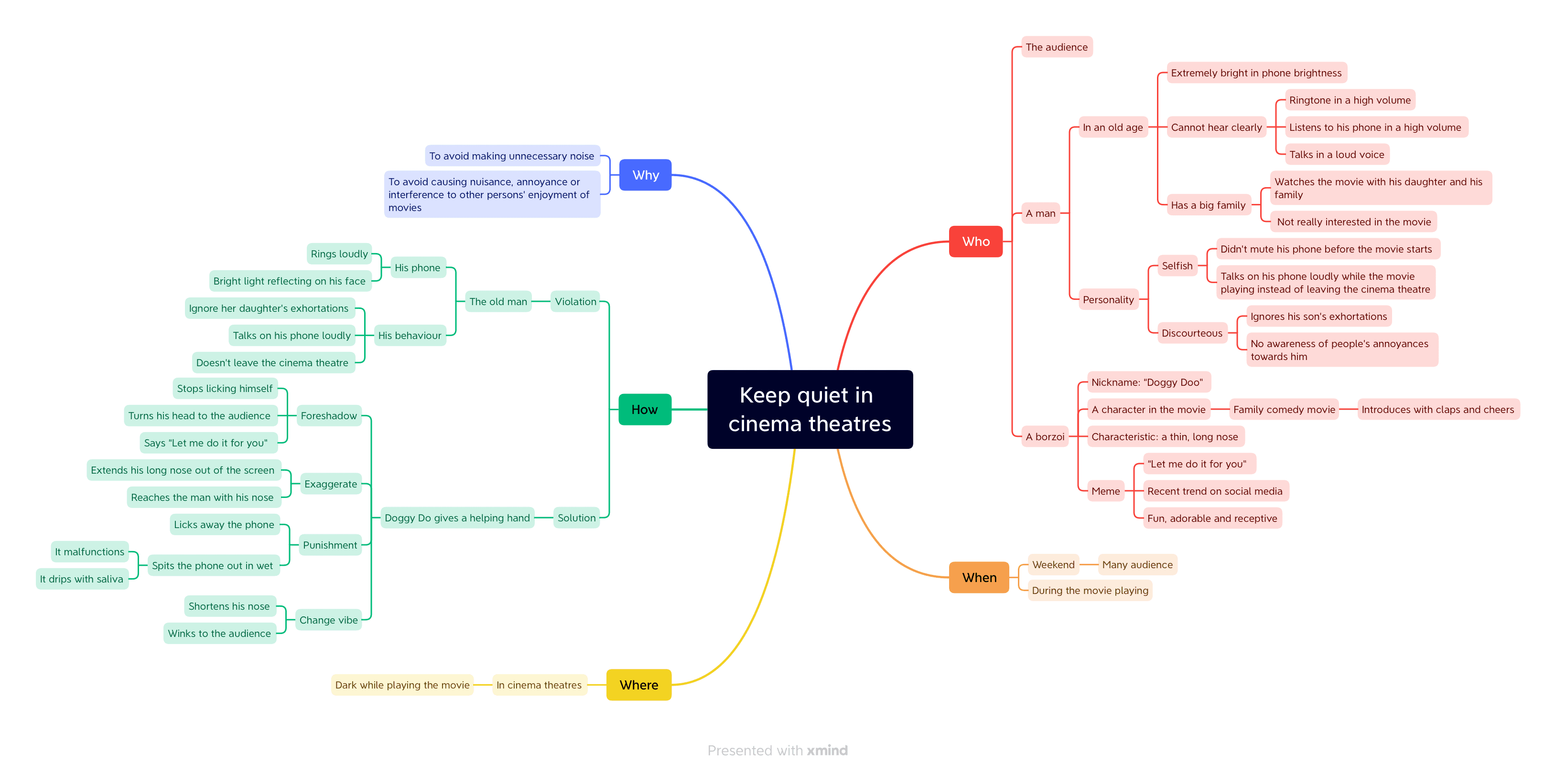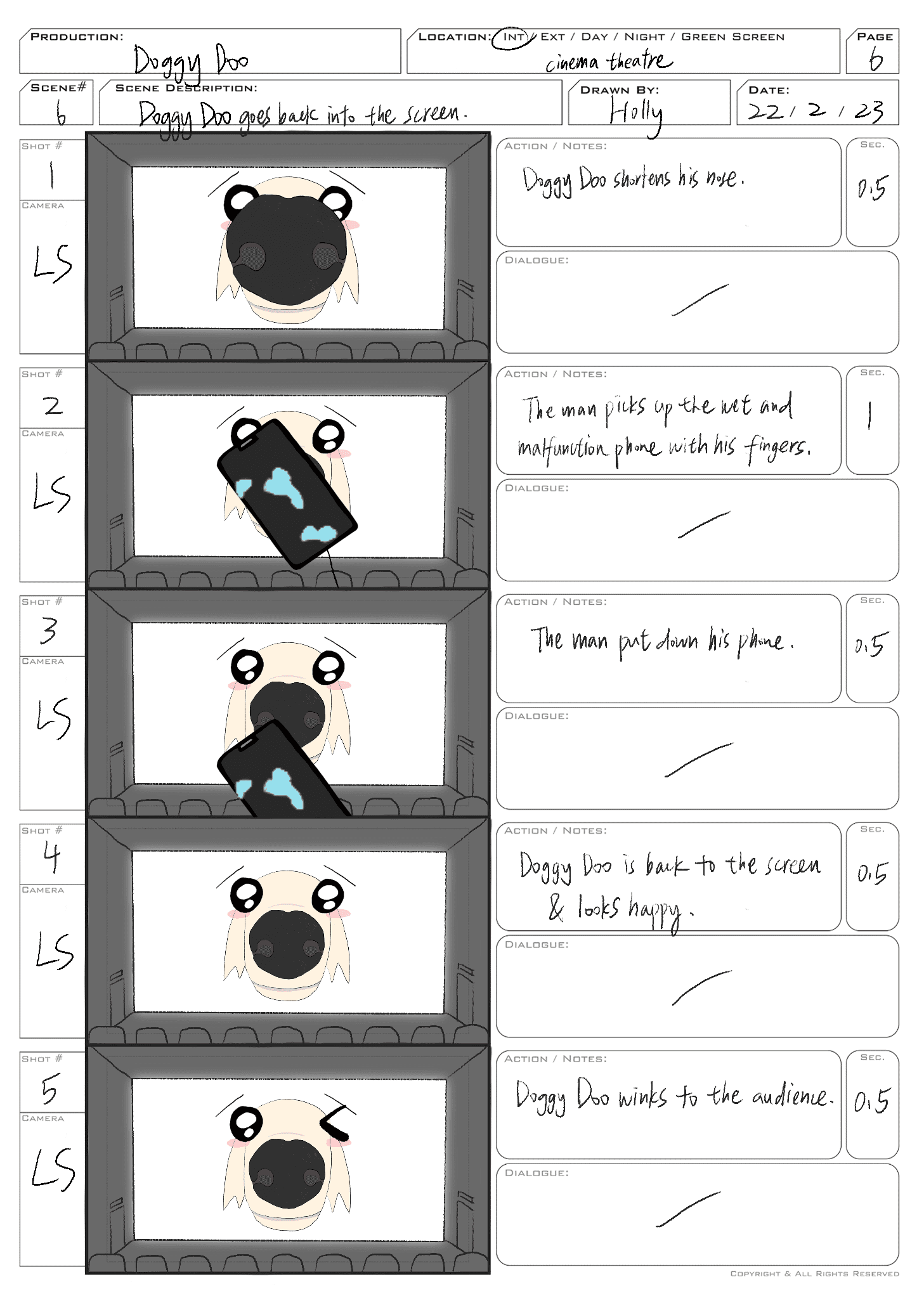 It is inspired by a recent meme called “Let me do it for you”, which is a borzoi with a long nose that is exaggerated to be elongated to be a helping hand to its owner. In this story, a borzoi named "Doggy Doo" in a movie playing in the cinema theatre will also be the helping hand for the audience to keep the environment quiet. It aims to tell people in a fun, adorable and receptive way that they should avoid making unnecessary noise, or causing any nuisance, annoyance, or interference to other persons' enjoyment of movies.